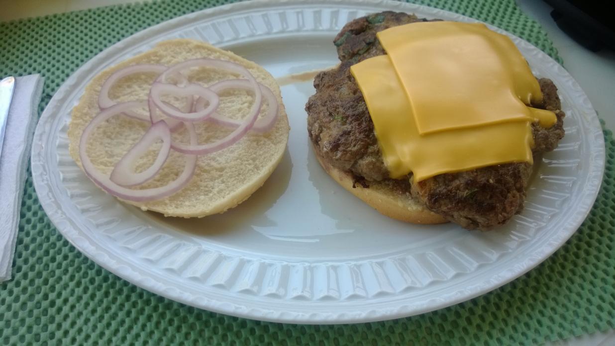 Ahh Bees burger, second time (this time he had buns)