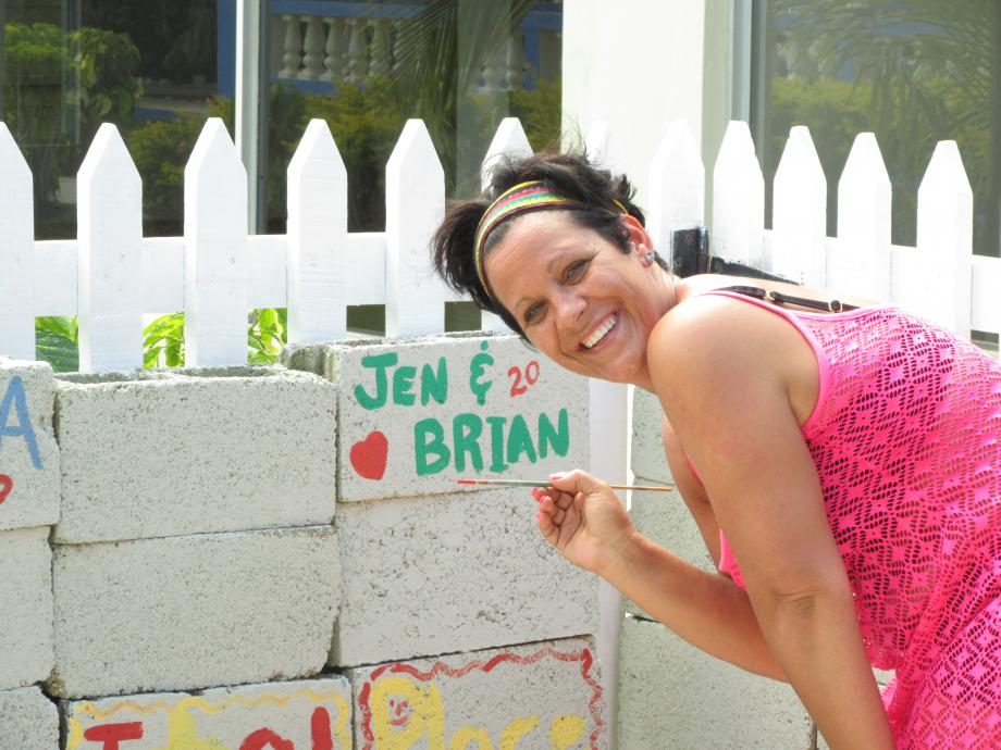 Around 11 - we decided to pack up and head down to Travellers. We wanted to buy some blocks and see some of the students perform. We hadn't walked this way (with the newbies) yet - so again, lots to see for them. We took our time meandering down the beach. Schaef and Aims found a little sand bar and walked that - which worked out well until it went away from the shore instead of towards it. :) We arrived at Travellers and they were just beginning to set up. Clearly we were super early. We sort of stood around for a few minutes trying to figure out where we needed to go and what we needed to do. Funny - I had no idea how much the blocks cost. There was a sign about tablets for a family for US $50 donation. Well, I assumed (incorrectly) that a block was US $50. Ok...I work in education - as does Aims - so I'm completely fine with it, but I felt a little bad thinking I just walked them down here to spend 50 on a block - not entirely sure if they even wanted to do this. They did. I recognized Mr. Wellington and walked over to formally introduce myself (I'm getting awfully brave on this trip). He gives me a big hug and points me in the right direction. We each paint a block: