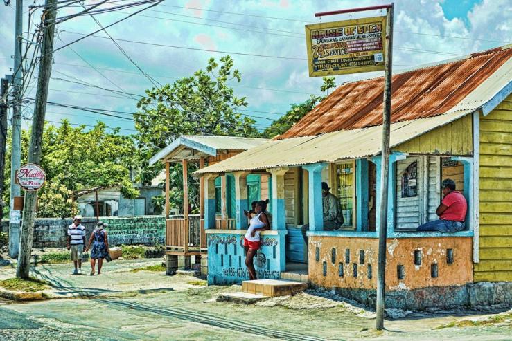 Sunday had arrived and it was going home day. We had enjoyed 8 wonderful nites in Negril while spending time with old friends and making a few new ones. We always travel with Rocky's Tours and Taxi and today our driver was Leroy and as always he was right on time. He is always a pleasure to visit with and I sat up front as I sometimes like to take pics out of the window. I had told Leroy that I wanted to make one stop in Lucea to take a picture and the picture was of a funeral home. When we had visited last year I had taken a picture through the window of this funeral home as we whizzed by. The picture turned out pretty good but I thought it could be improved on if we weren't moving and shooting through a dirty windshield. As we approached Lucea Leroy pointed out a funeral home but it wasn't the one. As we got closer to downtown he pointed out another one but that wasn't it. On the way out of Lucea there is a line of businesses along the road that fronts the water, that is where the funeral home was located, except now it is gone and some other business occupied that spot.