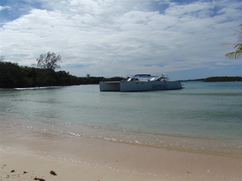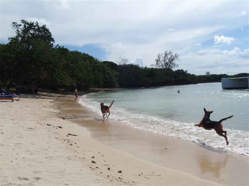 Even though Saturday was a late night (for us), still up at seven for coffee and yoga, then made some more eggs and callaloo for breakfast. We decided to head down to Half Moon Beach for the day. It was a nice drive, sunny and relaxed. There were a few small groups of people there when we arrived, mostly European tourists that appeared to be staying on the property. The Wild Thing showed up shortly after we arrived, which didn't bother us. It was a small group and they mostly stayed around the food and drink area that was set up for them.