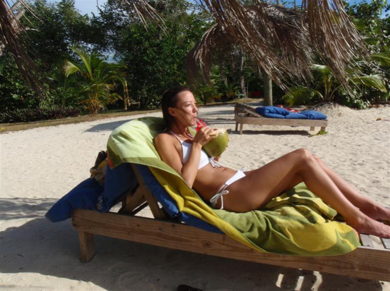 We had grilled lobster for lunch and I had a nice glass of white wine to go with mine. The lobster was a nice size and prepared well. It was a great meal. After lunch, more beach lounging and I had one of their special drinks in the green coconut made with coconut water and rum, it was awesome!