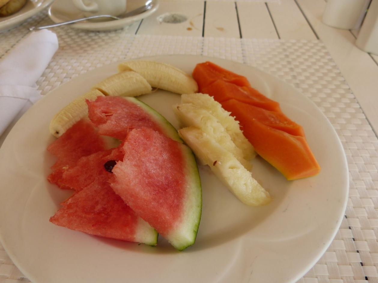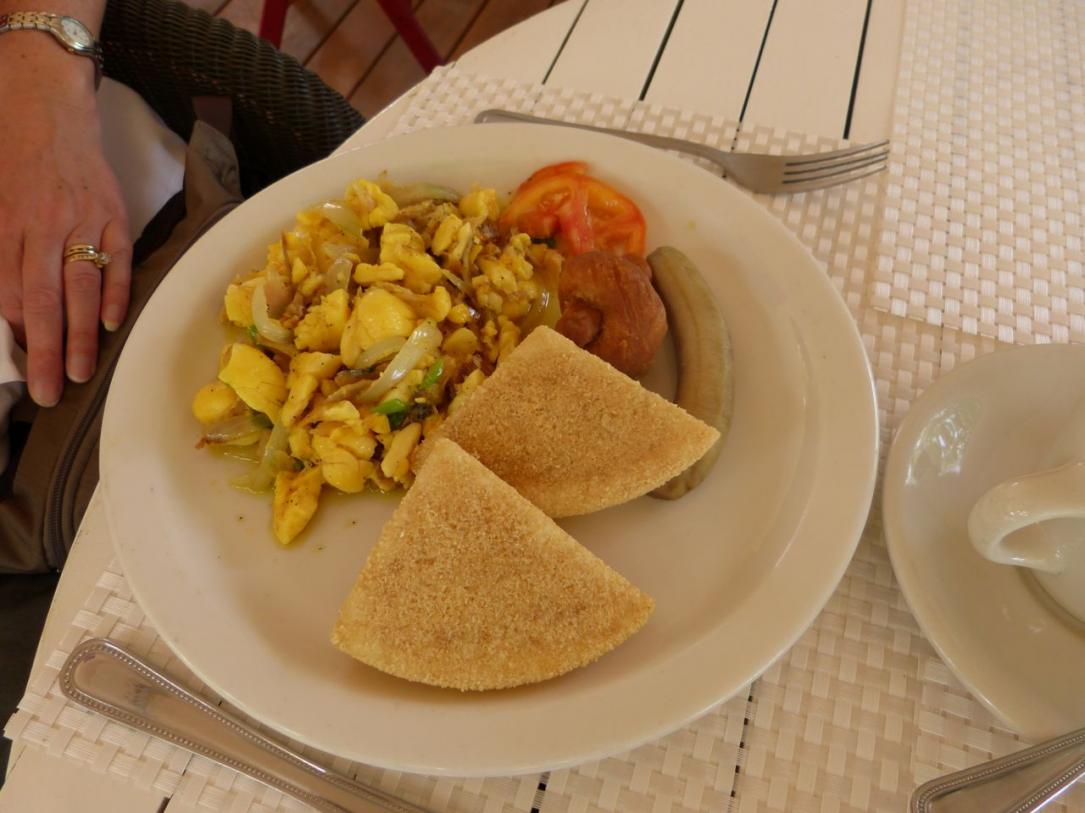Breakfast...Ackee and salt fish and a fruit plate...