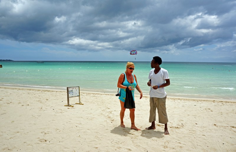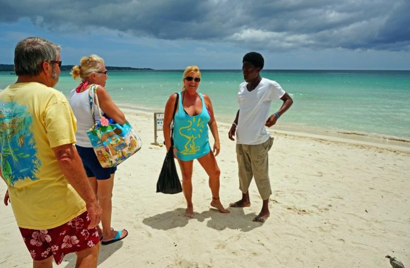 I'm sure that everyone who has walked the beach in Negril has experienced the FREE bracelet pitch. This is Tammy when she learned she was getting a FREE ankle bracelet.