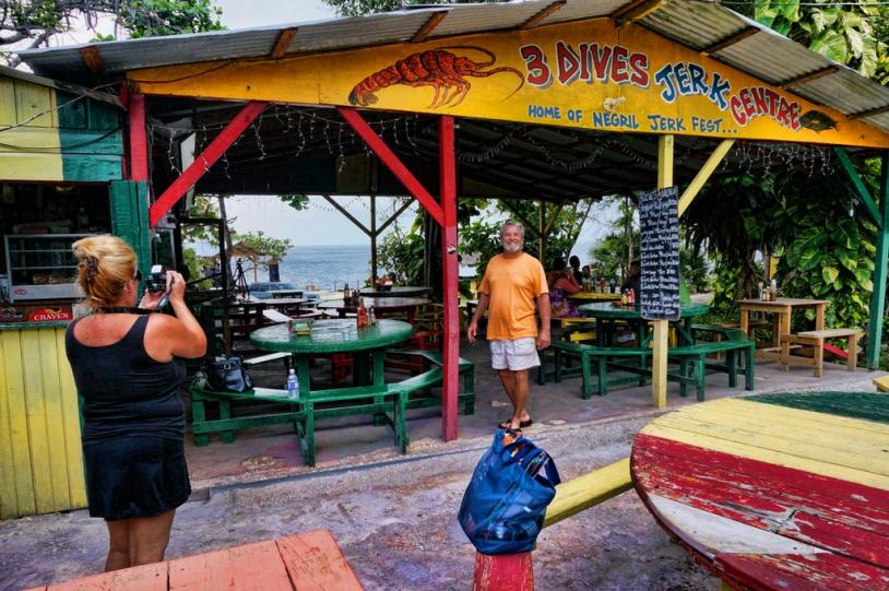 Our vacation was rapidly coming to an end. We only had one nite left in Negril and then it would be back home to reality. At our afternoon safety meeting we discussed where we would like to eat for our 'Last Supper.' I suggested going to 3Dives as I wanted Brown Stew Chicken and recalled I had eaten it there before and it was very good. Just before heading out for 3 Dives, my partner Cathy decided she wasn't feeling well and would just stay at Seasplash. So the three of us headed out for a great meal.