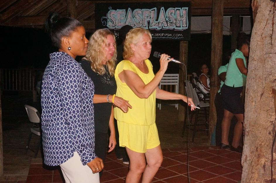 We arrive back at Seasplash and Cathy has recovered and is now singing Karaoke. The party continues!
