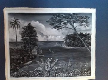 Picked up this great painting, black and white, captures Jamaica in a unique way