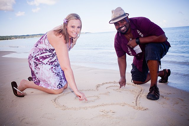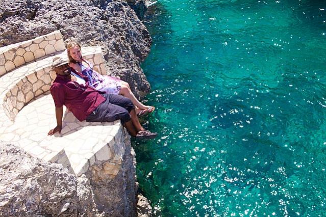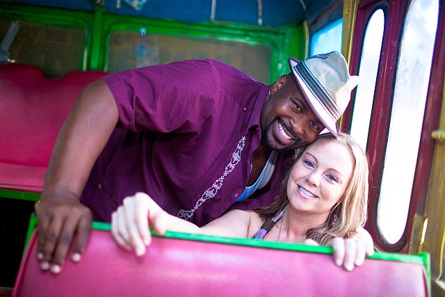 So we get up and Rye comes and picks us up at Catcha and we are off. Our first stop was Margaritaville. We took some pictures on the funky bus and all around the beach and the property. Lots of bright colors and fun pics there. After that we headed to Boardwalk Village, which really is a nice and cute little place, also lots of bright colors. They had a pushcart and we took some pictures there with that. Then we headed up the beach a little and took some pictures. We had wanted to take pictures on the beach the day after our wedding last year but the storm had done lots of damage and the beach wasnt looking so great so that is why we went out to the beach on this shoot. After we took some pictures we headed back up to the cliffs, but first we made a stop at RockHouse. You see Rockhouse was the the place I laid eyes on back in 1999 (first trip) and it was the location I fell in love with. It was then that I had said "One day I will get married there" And Rockhouse was the place I had always told everyone about. We used to hang at the Pickled Parrot and I thought that the RockHouse was the most beautiful place I had ever seen. Well over the years it has gotten pretty big, and popular and now they only do about 10-15 weddings a year and they book fast and they are EXPENSIVE....so I kind of gave up on that dream a while back, but never fear, from the moment I had found Catcha, I had a new love and I was fine with that. But I did always wish I could go there and perhaps take pictures on property for my wedding, especially on the bridge! (I have so many photos of this place over the years lol). Anyways that also didnt work out last year but both Rye and Raul remembered that I wanted to do that so we stopped to see if they would let us.....and they did.....so we had a fun mini photo shoot at Rockhouse! And it was beautiful!
