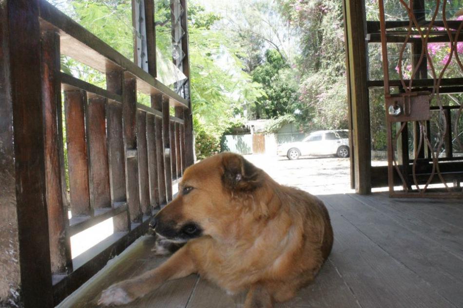 So this morning I ordered the "Jumbo Johnny Cakes" OMG are these good! You can order any filling you want, I think this morning I just got egg and cheese...mmm good. Took my rum cream to the table and enjoyed several cups of blue mountain deliciousness! We enjoyed such a nice breakfast and such a beautiful view. As we were enjoying this view we got a few visitors from the property next door. Yep, I heard some "ruckus" and looked over to see 3 mischievous and full of life (and of course cute as anything) puppies playing around Libra. I recognized them immediately to be 3 of the (6 I think) puppies that Sugar and Tensing had a couple of months ago, boy have they gotten big quickly. Sugar and Tensing are the two resident Rhodesian Ridgebacks that live at Tensing Pen. They are so cute these puppies. I watched them run, and bark and I went to visit them and got tons of puppy kisses. They stayed for a bit until their owners came to find them and take them back......lol