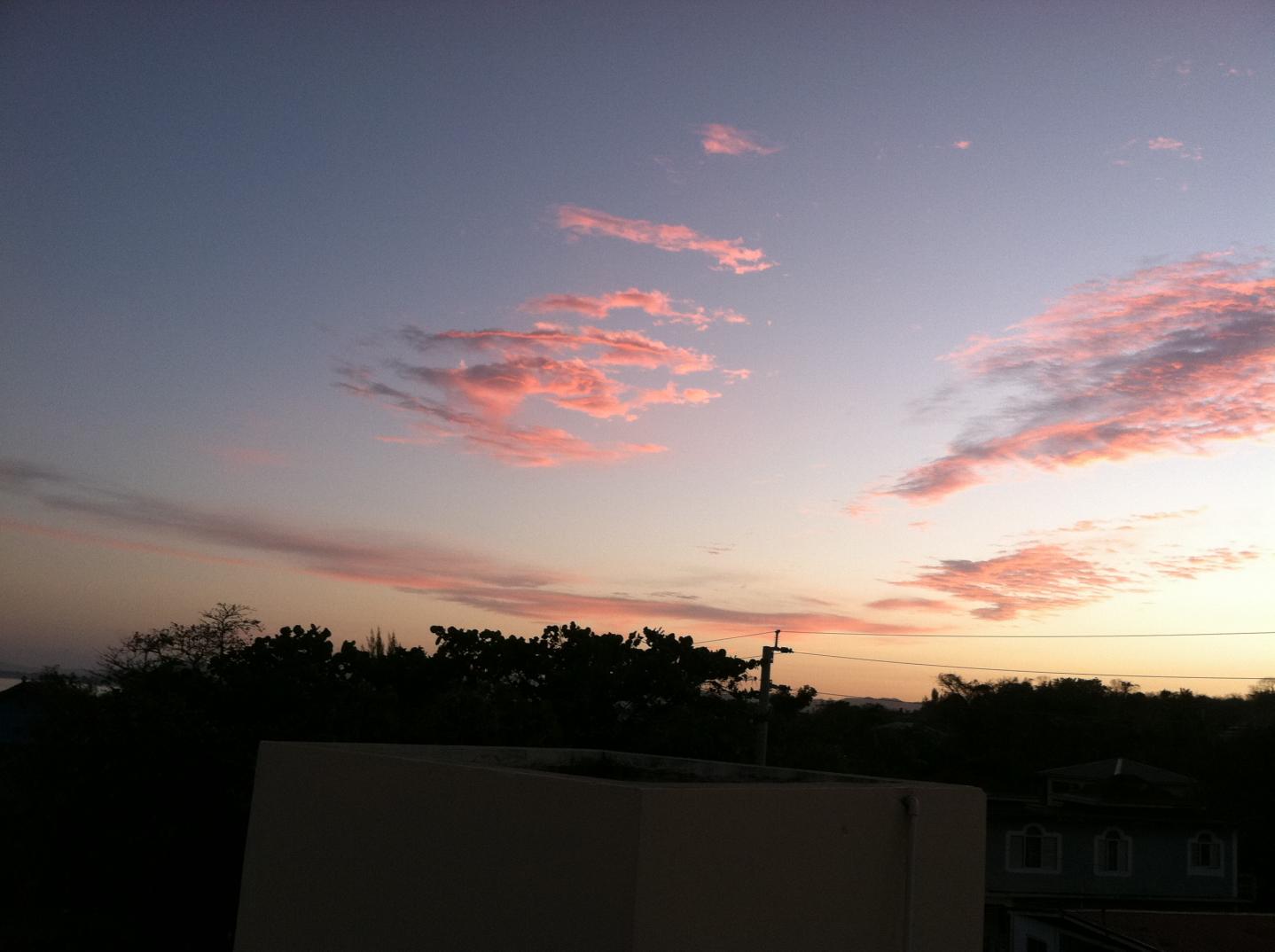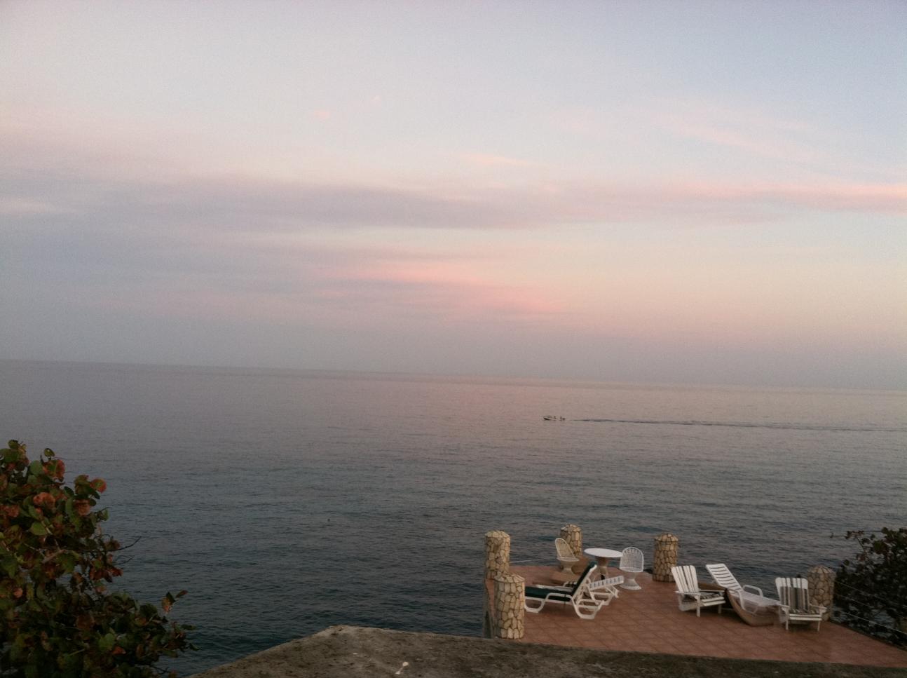 I love to find a spot where you can watch sunrise or sunset and turn around to see the opposite horizon. I find that often the light play behind you at these times can be as or more impressive than the sun itself. Sunrise in Negril offers the opportunity to watch darkness descend out across the Caribbean and our location is perfect. It does not disappoint today. A fishing boat headed out to the reef goes by and I have an incredible sensation of providence. I feel good, the sun is up and we’re in paradise. I turn to Sweetie Pie,”Coffee?” “Oh, yeah!”