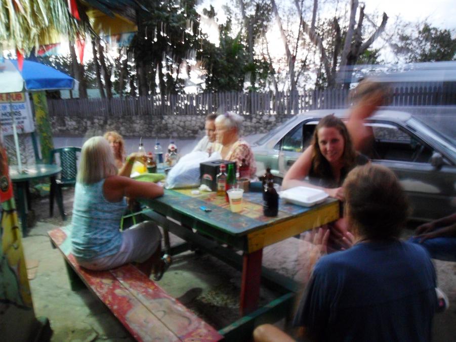We made it back to the Police Station bar again this trip. We've now been three times, bringing new people each time. The bartender remembered us. I'm not sure how I feel about being a "regular" at the Police Station. Oh well. No one believes there is a bar at the police station. It's not the nicest bar in the world, but for bragging rights, a nice place to get a beer. Apparently the police bar was the most happening place in town after a hurricane years ago, when it was the only place in town open and with power for a cold red stripe. This time we brought with us a group of expat friends who now live in Negril. It was nice to be able to show the locals around to somewhere they had not been before. We had a few rounds there, and then moved on to Red Dragon for some pork and a few more rounds of drinks. A wonderful afternoon, hanging out with good people.