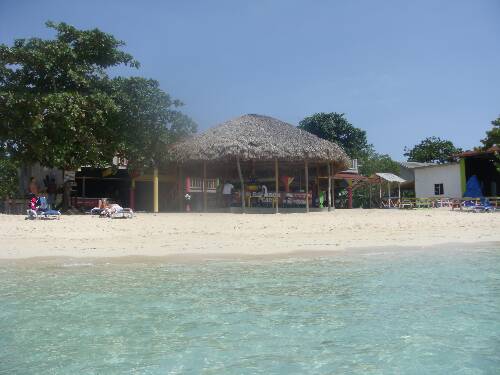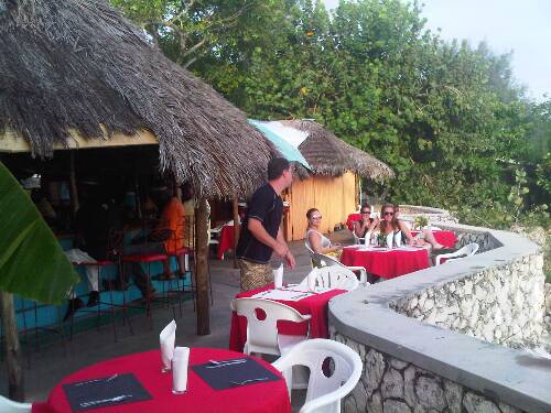 Basically large open air bar and stage for concerts that just happens to be directly on the ocean with a beautiful white sand beach that they keep very clean. Lots of sun and shade. I knew going this was going to be a hit or miss place. The 2 guys working there took care of us and treated us right. We had a great time and had the run of the whole place and it was a big hit. Did not sample much on the food menu. They cooked jerk chicken the way it is suppose to be done. Jerk chicken and sause are big time.