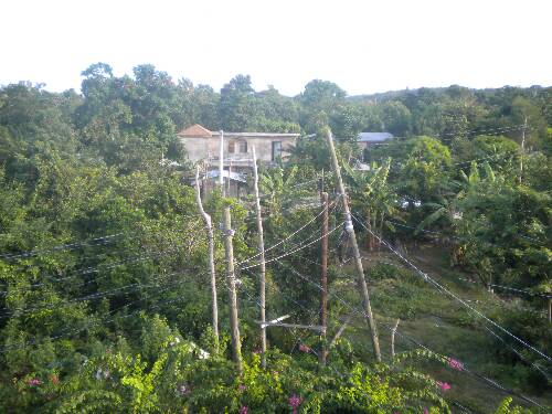 Walked up to flat rooftop (above our room #10) to take sunrise photos. Love the view from up here. Not too high to make me feel scared but high enough to get a nice 360 degree view. Cannot see the ocean but I know which way it is. Looks like regular neighborhood on the other side of the Lane. And towards the hills you could just see trees. Lots of telephone poles. Looks way cooler than the photos. View of the neighborhood.