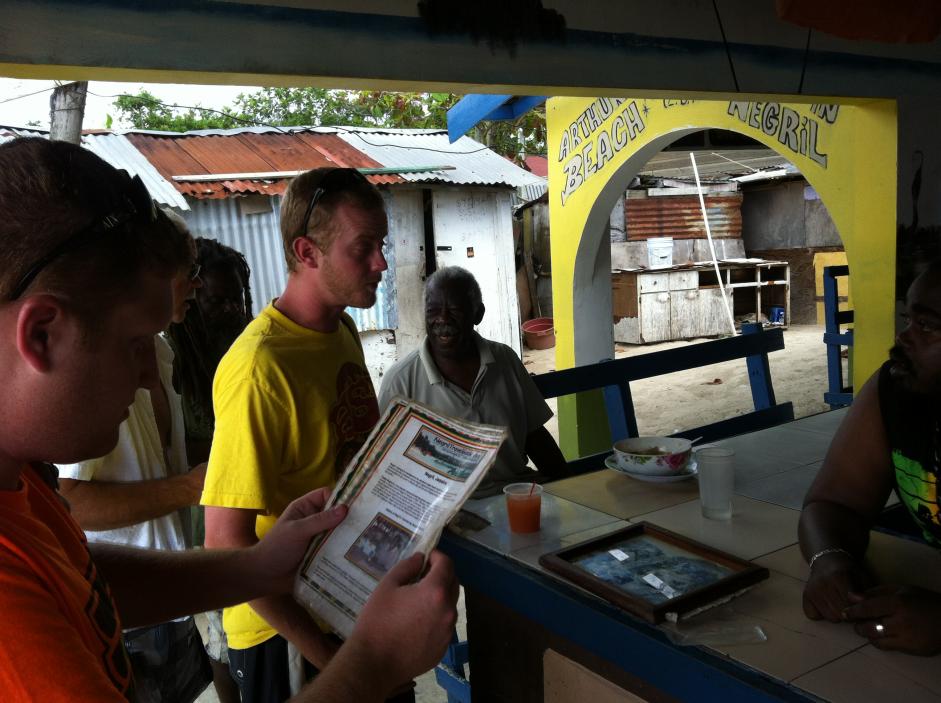 So I ask the boys if they have ever been to Arthurs, and they have not so , its a piece of Negril history everyone should stop at. It is the original beach bar, and according to a beat up old photo that survived hurricanes and storms, its a photo of the "first tourist to visit Negril signed by the women in 1950 something, anyway its always a fun place to stop.