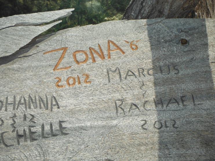 We had a blast at Pelican Bar as well, one of the coolest places on earth. The chill vibe is just what I love. If anyone reading this has not gone, GO! This picture shows we carved in the wood. We're from AZ there were 6 of us and we visited in 2012, agreat memory maker!
