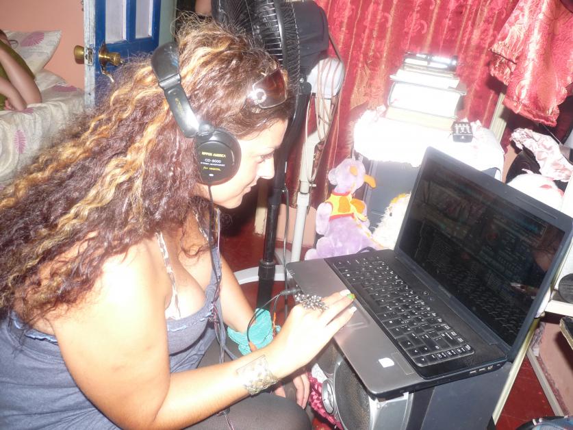 Her partner has 3 jobs and one is a disc jockey wooooo soyou know I was happy when I saw the speakers , ecstatic when he shown me alittle program on the internet I could use to be a cyber dj something I havealways wanted to learn.It just happened out of the blue I did not even mentionmusic to him ,I picked it up really quick , took me less than 15 minutes tolearn and I was soon pulling up the tune and adding effects and mixing musicwhich was sounding NICEEEE through the speakers.The photos just show one smallspeaker in the bedroom, he had a big pile of them outside the door.This wasvery helpful to me, one- because I love music -2 –because I now will not haveto return home to silence, he is transferring it all for me with all the musicon to my laptop can I get A WHOOP WHOOP TRIPLE WHOOP! Boop boop boop!