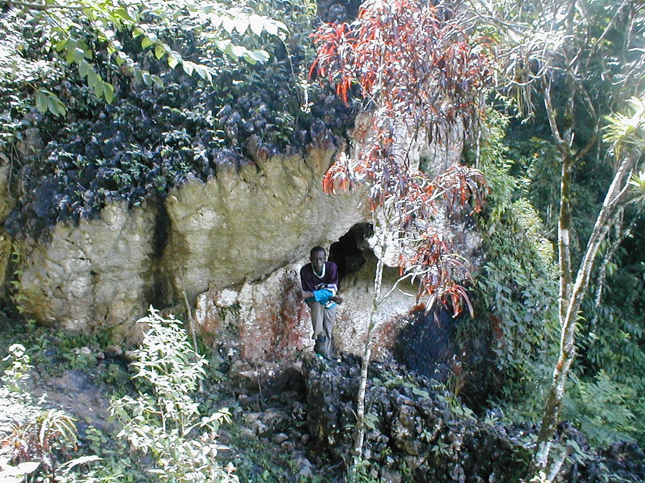 A picture of Marshall at the entrance of the Peace Cave outside of Accompong Town. This is where the Peace Treaty of 1739 was signed and where Cudjoe and his warriors would hide before attacking the British Troops at Big Ground.