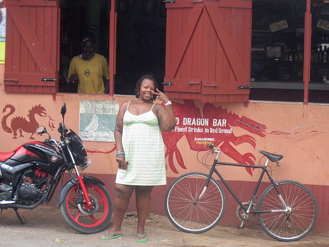 I had to take a minute cuz I had got tearyeyed writing that....After the tears were semi-dried we reach out final destination which is to get Jerk Pork. Now when he took me there the other night I didn't know the name of the place, he just said it was in Red Ground and I didn't pay attention to much because I was feening for jerk pork. When we pull up this time I pay attention to the building and it is the infamouse Red Dragon that I hear so much about. I go in to get 3 orders of Jerk Pork and I ask if he has any juice boxes (felt like a little kid, lol)...I can't remember the flavor but I want to say it was PineappleCherry or something like that and they did and I brought 3 juice boxes and back to the car and back to Rayon...eating jerk pork and drankin juices!!!
