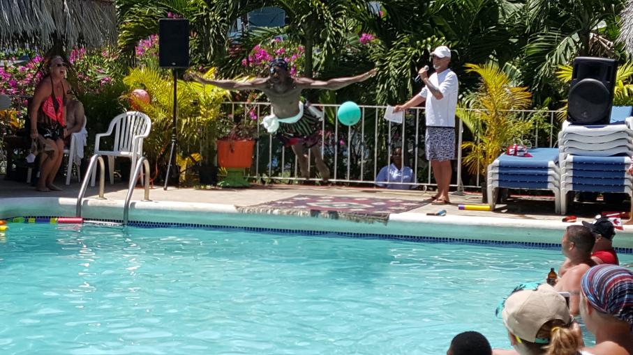 The next day is Monday...It is the 5th International Bellyflop Championship at Seastar...This event started out as a challenge between a couple of tourists and quickly evolve into a BIG DEAL....the proceeds go to the Get the Kids to School campaign, run by Father Jim and St Anthonys Soup Kitchen...we raised over 1400 US dollars for the kids this tie...such a fun day...Shout out to Muzicdoc Phil for all the work he put into this one...