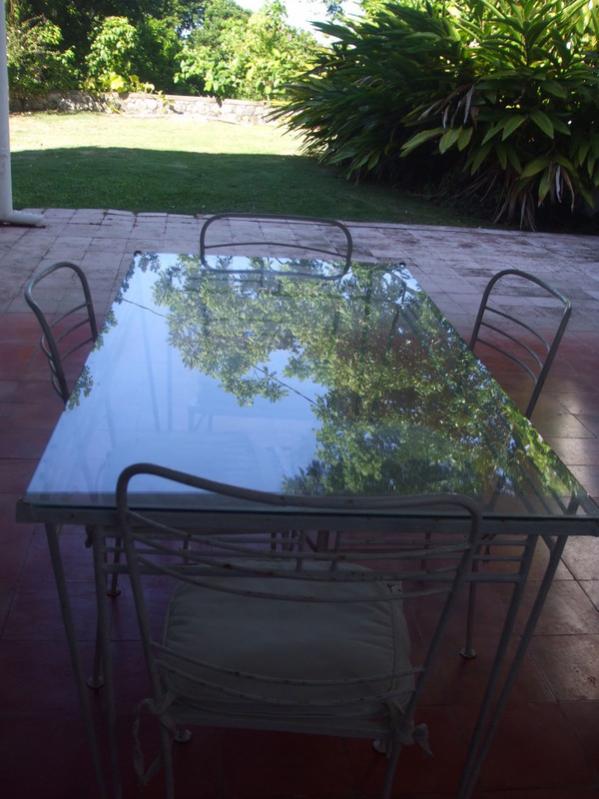 The china, crystal, and silver was used when Noel Coward entertained the Queen Mum ... the glass table on the patio is where the lunch was served~