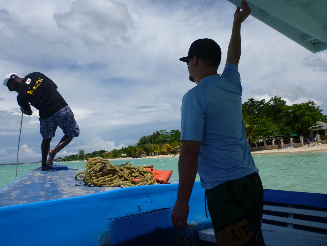 We stop off at the Red Stripe Catamaran to pick up the Captain and some fuel.
