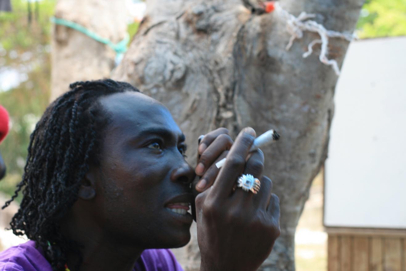 So we sat around in da yard swapping stories and they say its time for the interview. to my surprise a real energetic lady called DJ Ra Goddess jumps out of the studio and into the yard and starts passing the mic. next thing i know were doing a radio show from da yard. im guessing there were 10 or so different Artists hanging out and each one would lay down a little rap and sing a few verses...crunchy! i just sat there with a big silly grin and blissed out.