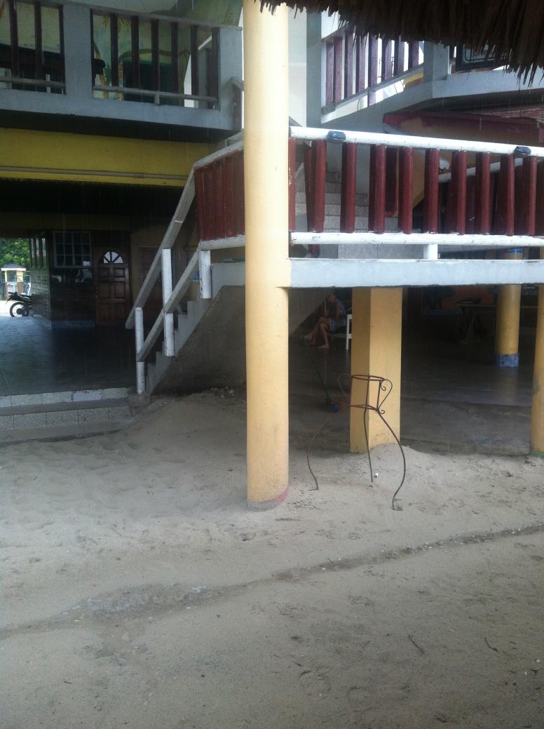 Some how this night I was wearing flip flops, at a bar, well at Margaritaville, it was raining of and on, with some heavy down pours, so that will be the reason I guess, any way, I had a tragic accident late that night, any one who has stayed at Crystal Waters must know the night security man, Kamel, he see,s everything going on , and some how was aware of my slip and fall, times 2!