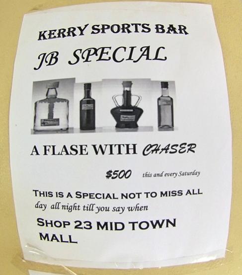 I know a few places in Negril that sell Flase's or Flasks :) of JB on a regular basis for 500J with chaser & also with ice & a glass as one bartender bragged....lol!