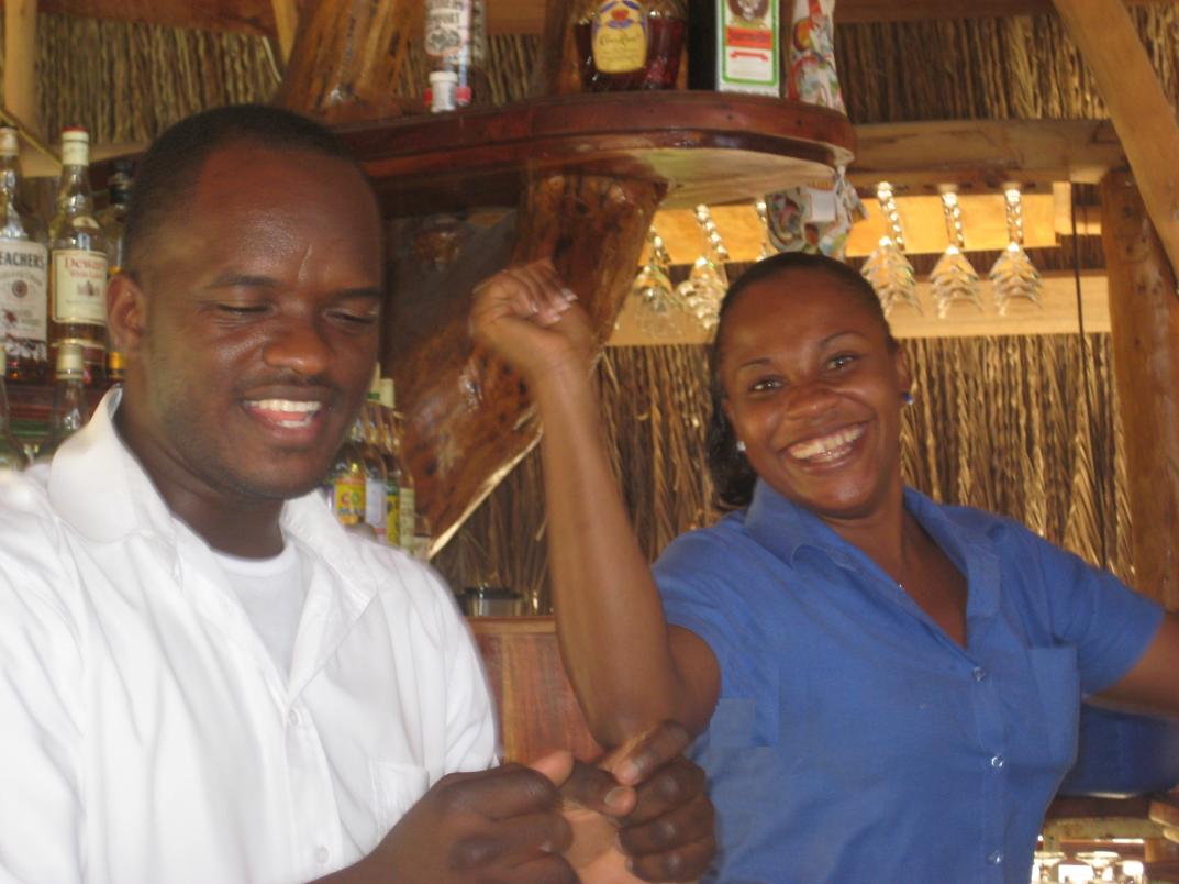 Here are 2 of ours - the Mean Green Bartending Team at Rondel Village, Donovon and Delroy