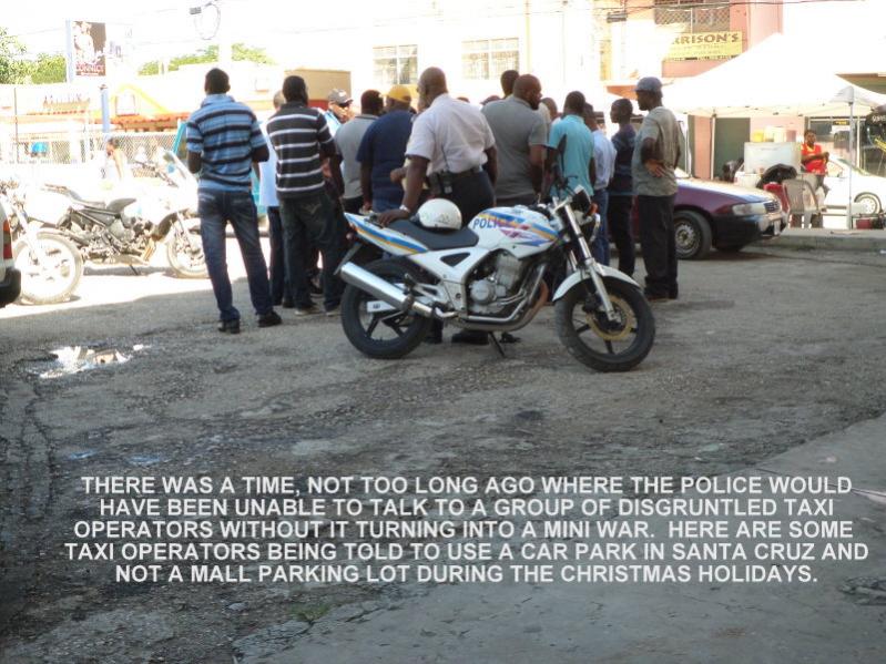 I am fascinated by the Jamaican people and like to observe them in different situations. From my days of living in Kingston, I found that whenever a few police and a large group of men converged, trouble and arrests usually follow. Things are slowly getting better with relationship of citizens and the police. Here was one particular meeting that illustrated the point.
