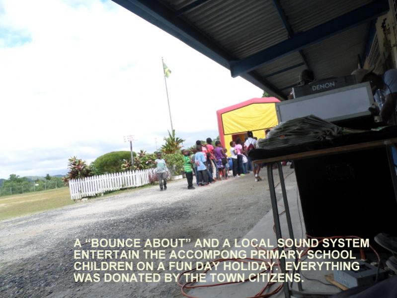 The Primary School students get a longer break for the holidays as the 5th and 6th of January would be nearly impossible to hold classes. My next door neighbor with his sound "Black Rhino" and the Town Council put on a Fun Day with a Bounce About. The crowd was amazing as almost every child and a parent or two showed up for the day.