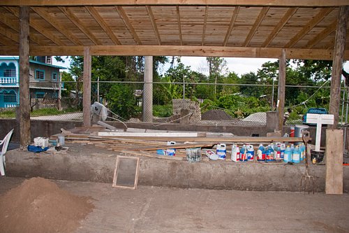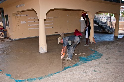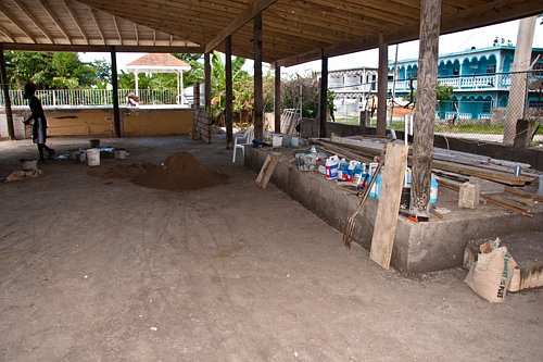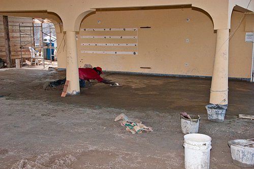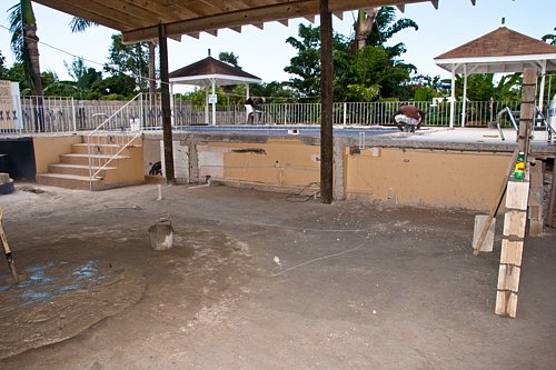 The renovation at Seastar Inn is progressing quite nicely. The extended roof is finished, and the stage has been put in place. The bar has been removed. Look foward to a new one. Francine's Gift Shop is being rebuilt, and the floor is being floated today. Enjoy the pics.