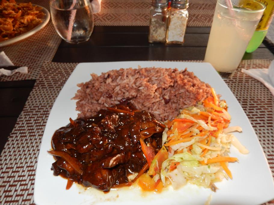 This morning I went walking the beach looking for an afordable place for dinner while watching the sunset. I found Zanzi Restaurant with good food, reasonable prices and a great view. I got the brown stew chicken $12 and Janet got bow tie pasta with chicken and mushrooms $15.85. The service was nice a pretty fast. Oh yeah, the sunset was pretty good too