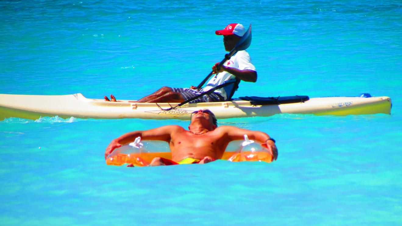Looks like the lifeguard is checking on the guy getting a sunburn?! hehe