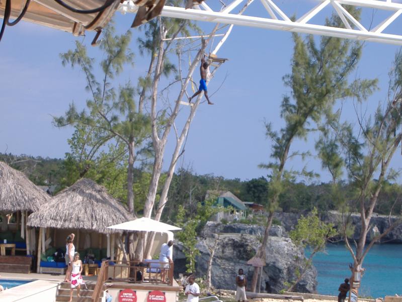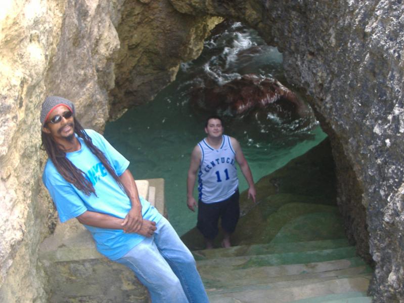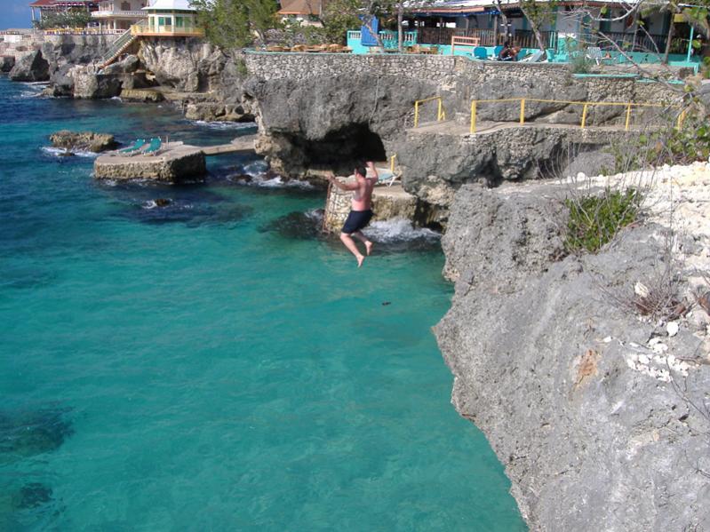 Took an Apple Vacations/USA 3000 flight from Chicago. Everyone on the plane was headed to an all inclusive, mostly in MoBay. We told a few people we were going to stay at a castle on the cliffs in Negril and got some strange looks to say to least. We landed in MoBay, and let the craziness ensue. Crazy long line for customs, but it moved quickly enough. Grabbed our bags and headed outside for our first view of Jamaica. People were everywhere, yelling about taxis. “Yo man , where you going?” they all yelled at once. After a few seconds, I saw Petey, our driver, holding the tiniest Blue Cave Castle sign you could imagine. Introductions all around, then we hop in Petey’s little hatchback for ride to Negril.