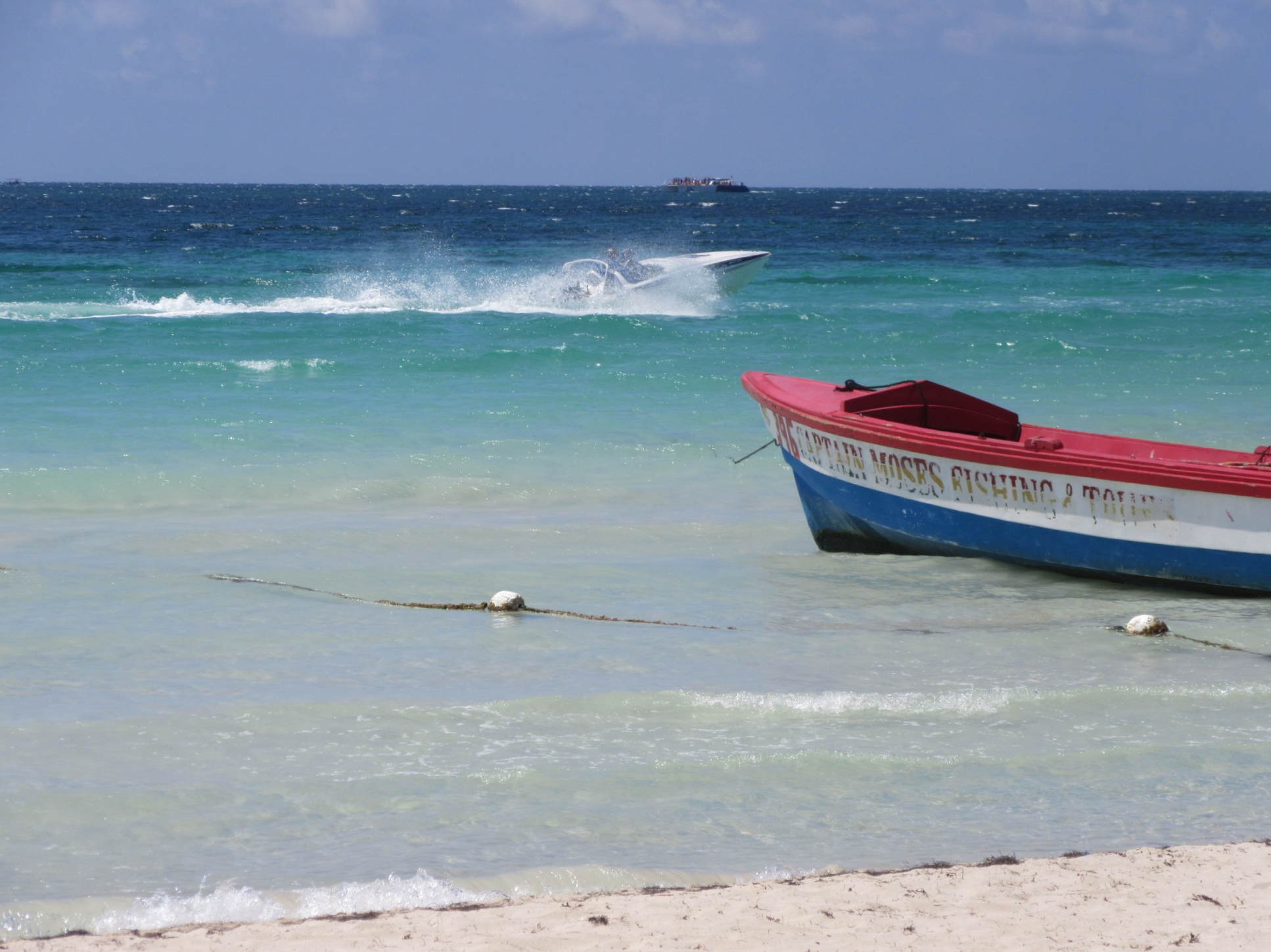 I've watched the routine of these guided speed boats many times..they speed out of their AI complex area into the cliff area and then make their way back at a slower pace nearer the beach/swimming lines. I've seen the Tiki Bar & fishing boats go along the same beach line just as quickly. Don't get me wrong though...I don't think the boats should be this close