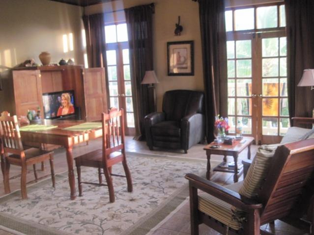 Day three – pool time after I unpacked finally (ha). Then a blended fruit that KeyMar made for me – how cute is he? Great person and top service – he is calm and kind and always smiling. Shot of the wood cabins on the back of the property – they look nice and have screened shutter windows and screened front door over a regular door and full kitchens I think. Gerry ckd me in and was also very very nice. Ivy the guard dog is still not sure of my but laid by my table finally for a few minutes – glances only no love yet lol, gotta earn it.