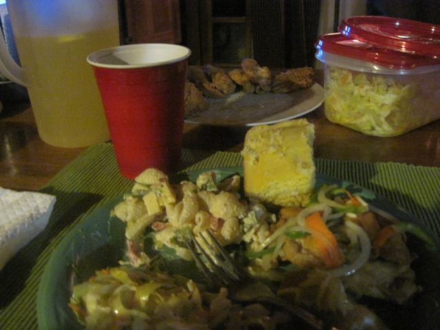 Chopping again – tonight FRY Snappa fresh from the sea w/Tony Sacchera (sp) fish seasoned coating, escovitch pickled onion, carrot, peppa and scotch bonnet, pasta salad, slaw and hot cornbread with corn in it and hot butter ON it. Oh and fresh squeezed lime made some lemonade w/JA sugar and it tasted so nice………..got at 10 for this one (lol) some conversation and TV Game show channel laughs at the Newlywed Game and Match Game from the 70s……..good sleep again and here we are today…….Day Four off to the beach – more reports soon come. Love and blessings…………………