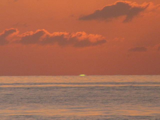 I always thought that those who claimed of seeing the green flash had a nice buzz on. It was probably 20 plus years of going to Negril before I saw it. Now we always watch the sunset, every night if we can, and look for the green flash on a cloudless evening. Mi Lady's photographic acumen is apparent in the above pics. If it were me holding the camera, I would probably drop it in the sand. Anyway, I have seen the green flash several times...."It does exist!". WM