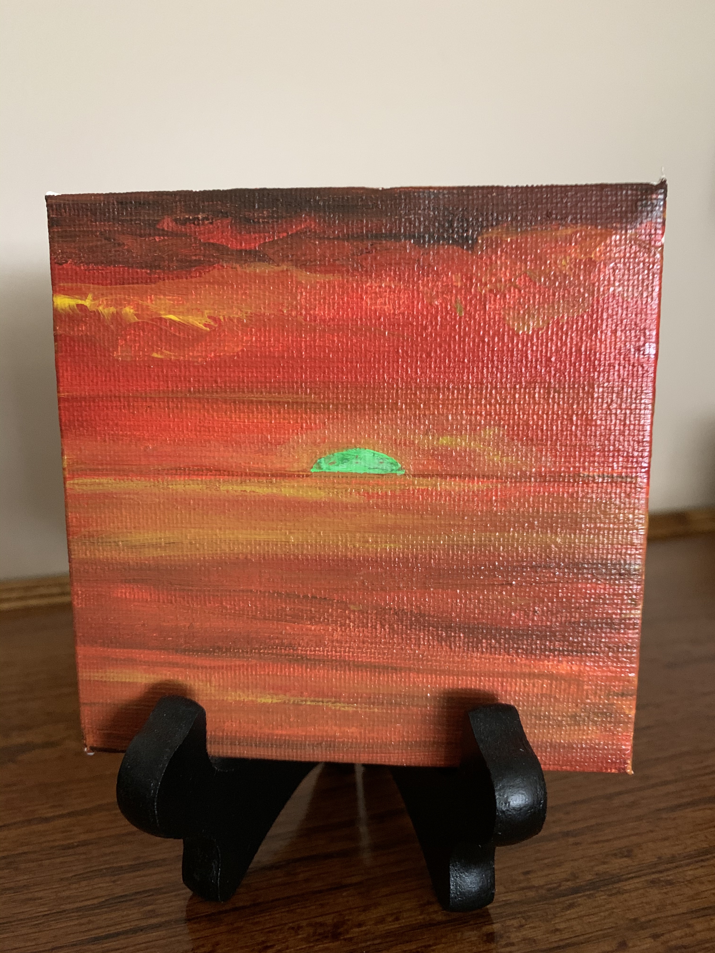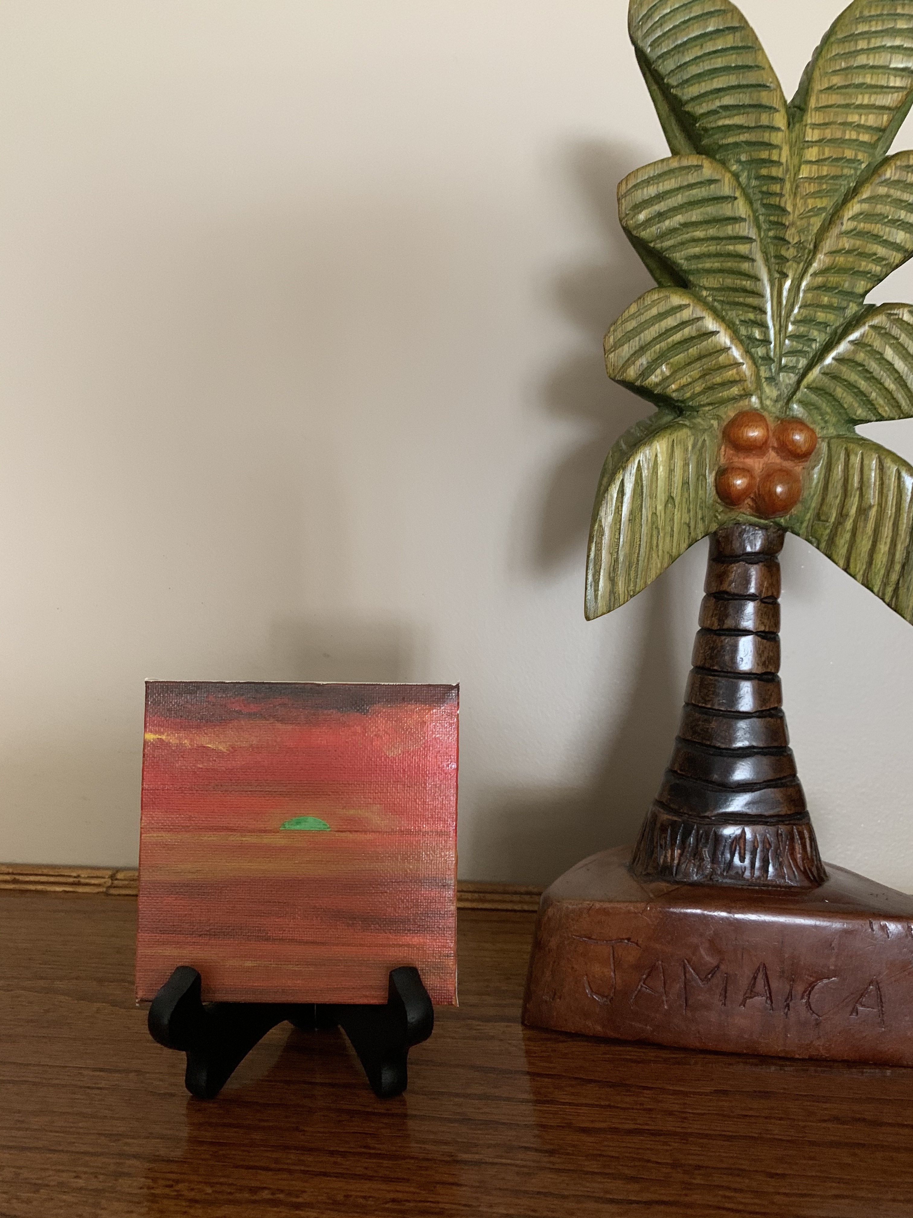 Sure have…January 26, 2019. Watching the sunset at Sun Beach. MiLady must have had the right amount of rum and got a lucky shot. Showed the photo to our artist friend Ras Husmo. A few days later, Ras gave us a special gift, Attachment 55974Attachment 55975Attachment 55976Attachment 55977this little painting. It has a special place on our fireplace mantel.