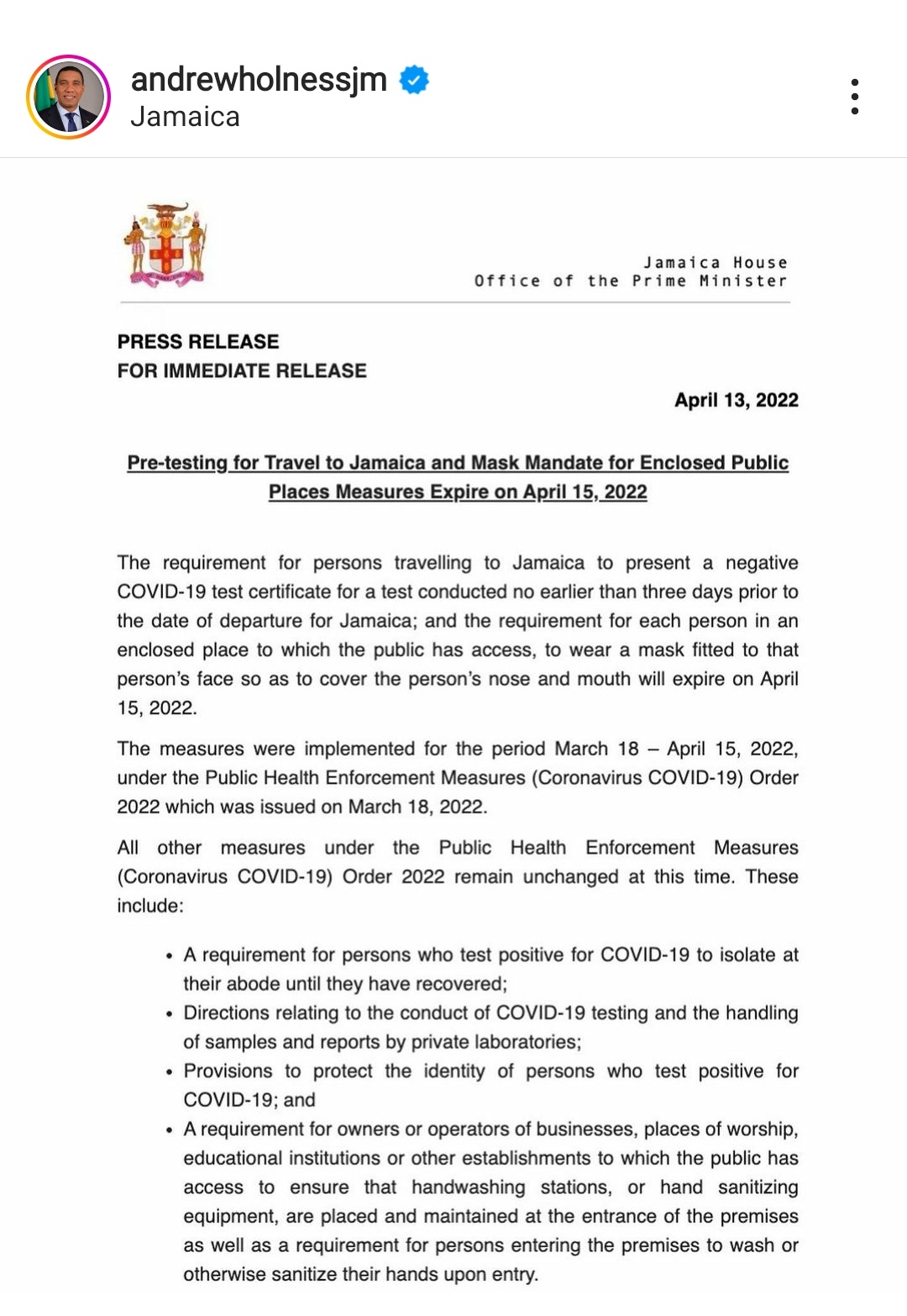I checked with American tonight. They will still require until Jamaica updates their entry requirements.
