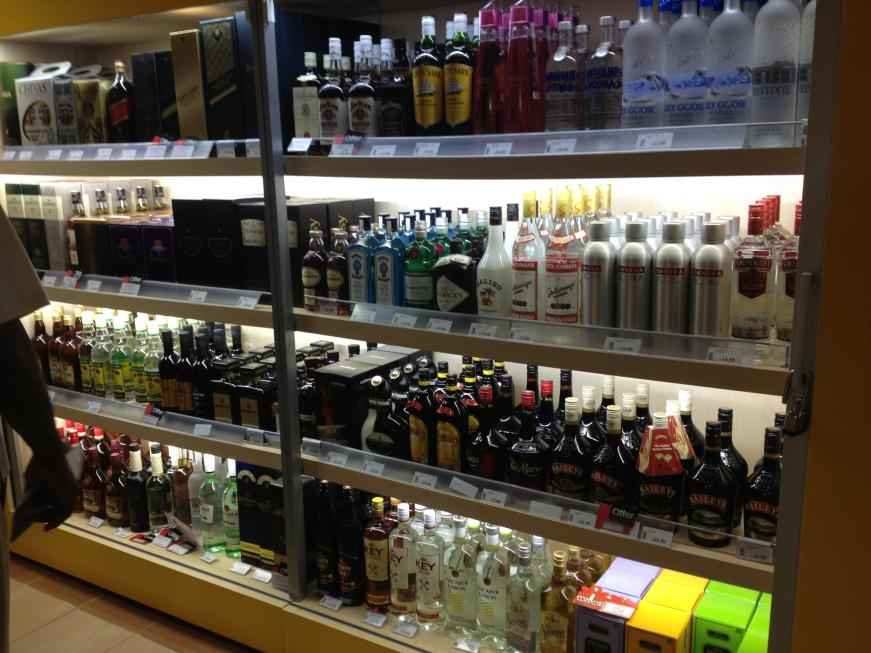 Thank you! I know that lots of people have been wondering what the duty free liquor set-up looks like, so I thought I'd snap a pic. :)