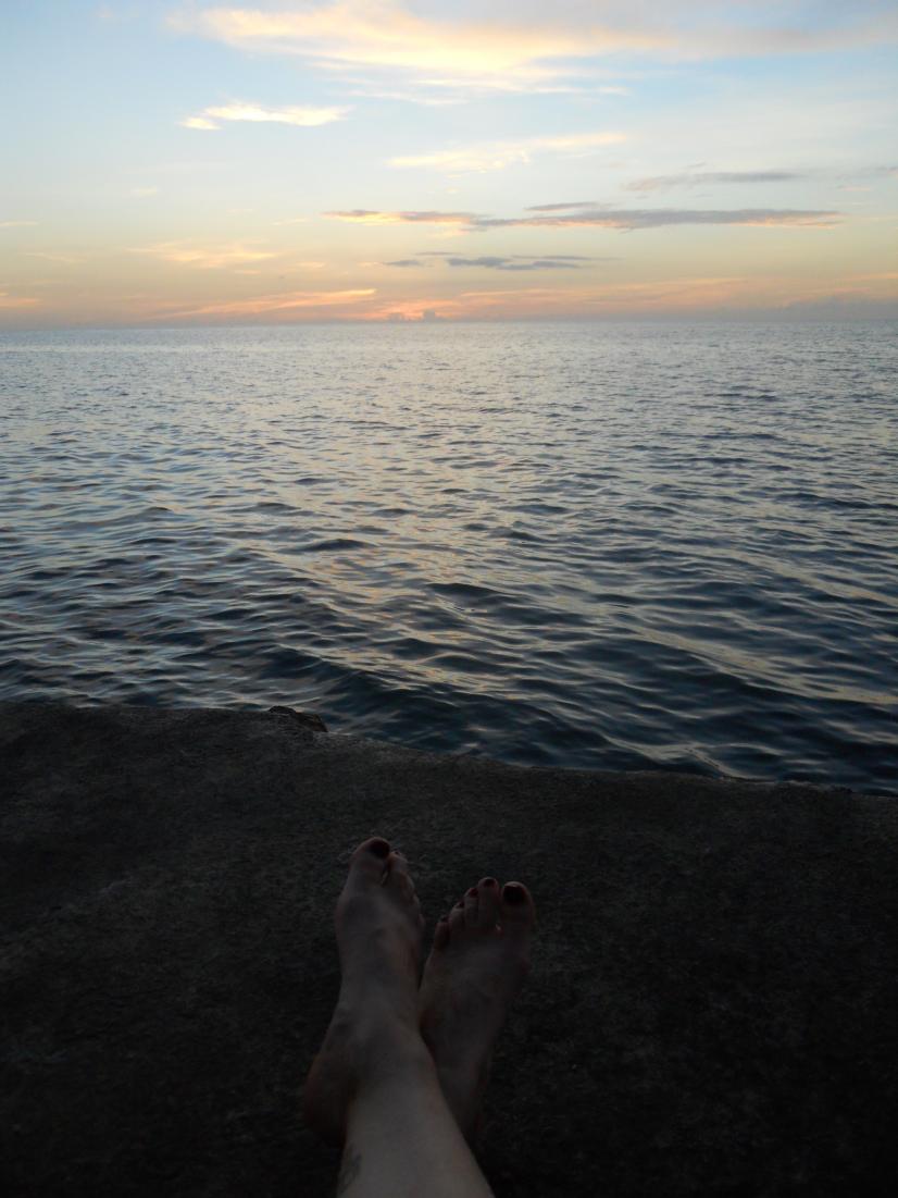 We quickly stormed down the steps heading to the largest and smoothest swimming platform and we peeled our sweaty dresses off and before either of us knew it, we were in the water. I eased myself in and pushed back (gingerly because I had re-broken broken pinky toe from being clumsy two days before leaving for our trip – I originally broke it 11 years ago at my bachelorette party and damn, that freaking hurt). As I tasted that first flavor of the salty sea, I spread my arms wide and floated back, toward the sunset. I turned over, dove down, immersing myself fully in the sea, somehow both cool and warm simultaneously. It was perfection. Meanwhile, Krista was out a ways exclaiming, “I’m so happy! I’m so happy!”, making me smile and realize that our entire 20+ year friendship felt like it was coming to some sort of culmination – a special place that we’d never forget. We’ve travelled on the road together a number of times, but never like this, even though we are both relatively well-travelled for our ages and incomes (her more so than me). We made a pact to do as much as possible on this trip – she had made a list of things to do, experience, to taste, to see – and we were determined to cross off those items. In fact, just the very act of floating in the ocean watching the sun set before us, as Rum Punches danced on our taste buds satisfied a number of items on the list alone.