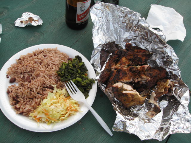 The food, I don't remember exactly, but was reasonable - like $500-700J for a quarter chicken or pork plate with rice&peas, salad, and callaloo - less for just meat.