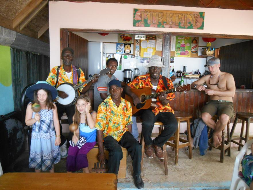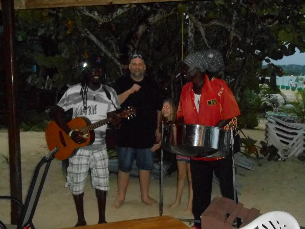 Day 1 - At Toronto airport for 8am. Landed in Mobay at 2pm. No issues and smooth sailing at both airports but immigration line was very slow and long. Steve Positive was waiting with a smile and a cooler full of refreshments. Will talk more about him later but could not have asked for a better guide and friend through out the trip. With family loaded up we headed off to Mega Mart. Bought Juice, snacks for kids, a few cases of Smirnoff Ice, a few bottles of rum, and rum cream. While cashing out I noticed a lime booth in the store. Steve had given us a cell phone (with credit on it I must add), but we both wanted one, so I went over and checked It out. Wow! Only $900j for a brand new (basic) cell phone. Put 1000j credit on it and off we go to Negril. Arrived at Firefly to more smiles, checked in and hit the beach for dinner at Rainbow Arch. Although empty, they cooked us jerk chicken, curry chicken and fried chicken with great care. Fantastic first meal for everyone but Juliana (9 years old) she can b very picky! After, we took a quick swim and put kids to bed. The firefly one bedroom apartment was perfect for us. Large bedroom with end tables, large dresser, and armoire. Living area with double bed and couch. Full kitchen with large fridge, oven, 4 burners, and all the pots, dishes etc. and a nice large bathroom. Only thing missing was a microwave for warming leftovers, and to be honest they would probably have got us one if we asked, but we didn't. With kids in bed we wanted to go back to beach for a few drinks but were nervous about leaving kids in room. This was solved quick. After talking to security about it we got the "no problem mon" and he moved his chair by the steps to our room so no one could get up or down without his watchful eye seeing it. This calmed my wife and off we went to the firefly beach bar. After a few there and a few next door my wife was feeling wobbly but I was just getting tuned up. It was about 10:30 on a Thursday night but our part of the beach was quiet. Ended up at treehouse for a few and than taxied down to Bourbon Beach for a few final rounds. Good live music and very cool chilled crowd. Off to bed around 2am. Great first night!