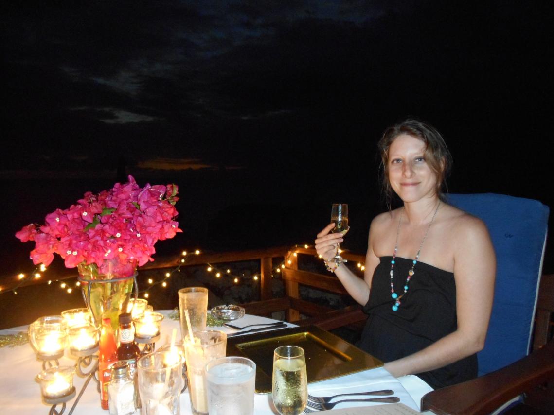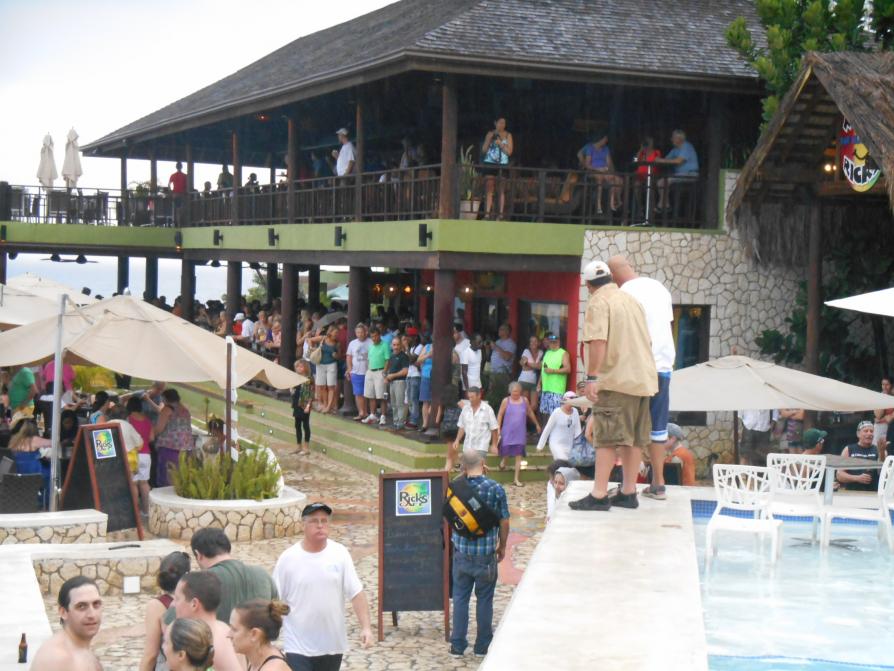 Day 6 - ROMANCE IS IN THE AIR! This was parents day. The family woke and we walked next door to chances for something to eat. A lot of their menu was out of stock but food was good, vibe and view was great and price was right. Spent day on beach and at 4 we returned to room to get ready for big night. Our cleaning lady had agreed to babysit for the night. She arrived at 5 and out we went. First we cabbed it to the Skybar. Beautiful setting but empty at this time. We had a few cocktails and jumped in cab for Ivans! WOW! If anyone is thinking of the 100 candles dinner don't hesitate! You cant buy that experience anywhere North for $1000. Right over the water! We were greeted by our own private waitress and taken down the path to our private oasis. Candles, and small white Christmas lights lined the path. Our seats were large high, super comfy captains chairs, the table and surrounding area were covered with flowers and a table and candelabras were full of candles. They had a bottle of champagne chilled in ice beside the table. We had a few glasses of bubbly and a sub at the table to get used to these amazing surroundings and than the meal came. Started with a nice but simple soup, than an appetizer plate with crab cakes, shrimp and jerk chicken skewers, next was a fabulous pineapple salad. Took a sub break and finished the champagne. Now the main course. I had the jerk chicken penne and she had the garlic shrimp. Penne was by far the best thing I ate in Jamaica !(ever) Dessert was a chocolate cheesecake and flambé bananas over ice cream. Yumm! All I can say about this is I was the most romantic, fantastic meal ever. We like the finer things and I have had a better meal but not much better. But you cant beat the surroundings and beauty of it all. Superb view, sounds of waves crashing, and subtle music. Cant even find the words to describe it properly. We will have 100 candles EVERY time we go to Negril. Please if thinking about it just do it. Cant be disappointed. Dinner with large bottle of champagne plus 2 fancy drinks each was $160. WOW WOW WOW. we stayed for another hour just chilling in our surroundings, didn't want to leave! When we left the gate keeper at catcha didn't want us to leave without taxi but we assured him we would be alright and off we went. We made a deal to stop at every bar with 4 tables or less. We found a few nice local joints to have a rum in. Met some great locals and shared drink and smoke with all. After the 3rd bar we jumped in a cab and finished the night with a few drinks at canoe. Don't remember his name but there was a nice older gentleman behind bar with great attitude. Really nice guy. By now the Mrs. was felling no pain so we headed back home. GREAT GREAT GREAT NIGHT!!!!