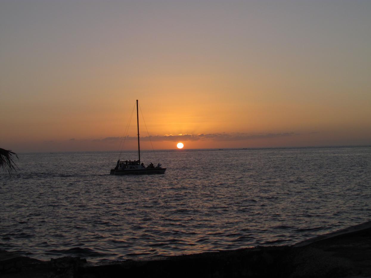 So, first things first! Drop the suitcase on the bed, slip on a pair of board shorts, and run for the water. We've been waiting for this for the longest time. The feel of the sand between our toes, the salt water stinging our eyes, and being able to just float, and float, and float. The beach was perfect. The water was perfect. And there were NO JET SKIS! I don't want to start a controversy, but not having jet skis was wonderful (more on that later). After a quick swim, we head to the bar. The Ocean Breeze bar attached to BHV. We introduced ourselves to Lance (Mr. Romance) and ordered some Stripes. Just then Michael yells,"get your camera!". It's our first sunset in Negril. Spectacular!