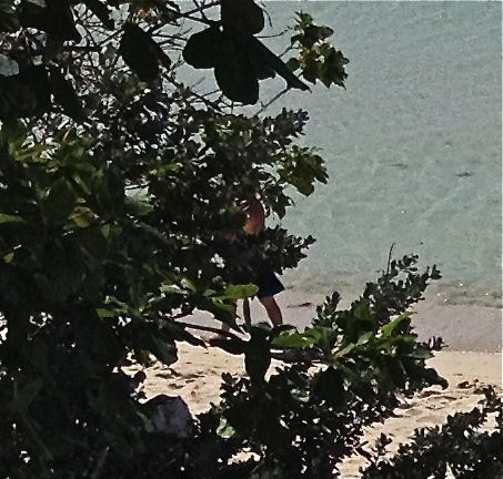 This is what we have...the second picture is a blow up of the upper left of the first. He was wearing blue shorts, knee length and carrying a tan? shirt. I think I saw him again on the street side a day of two later.