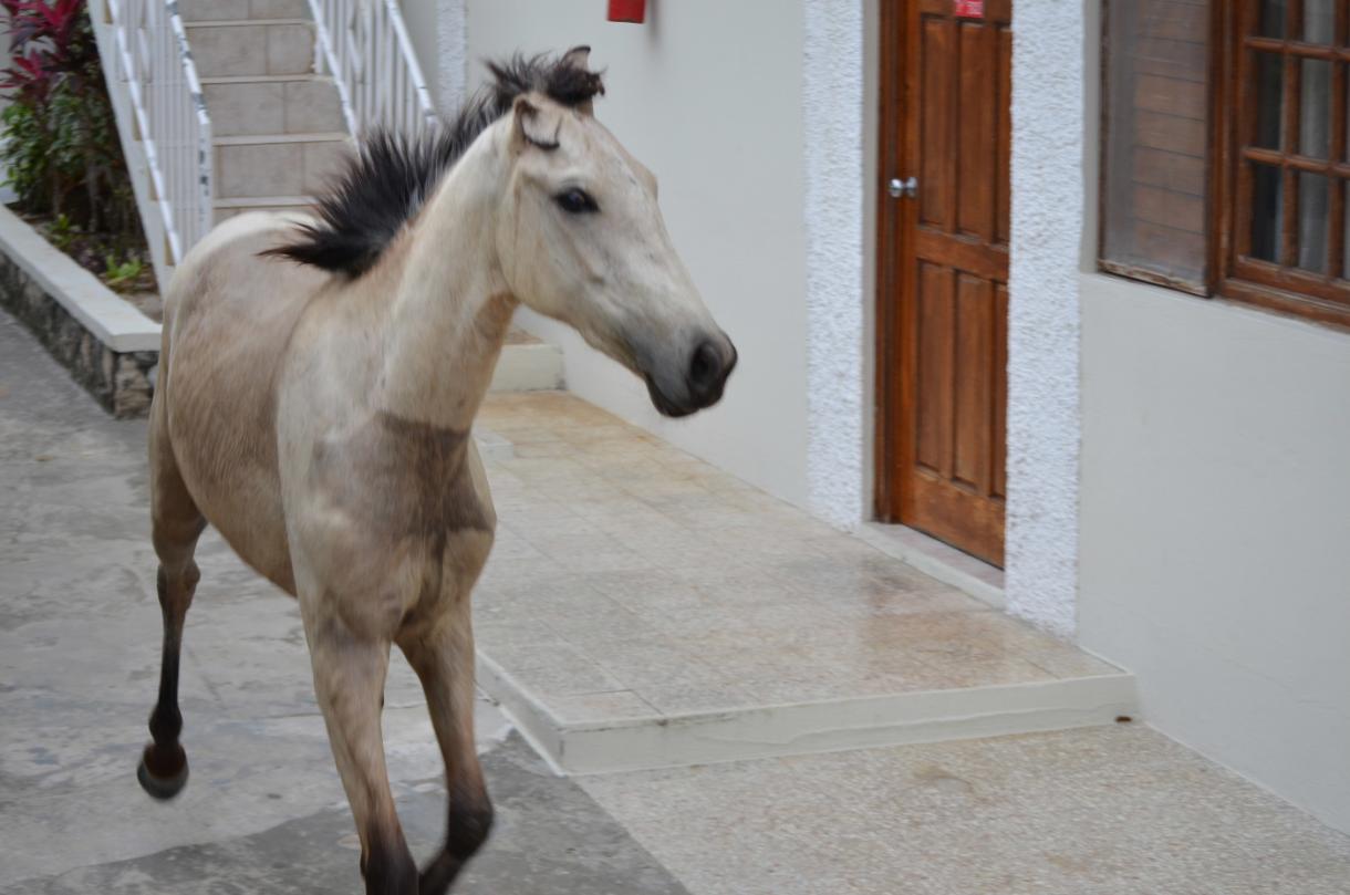 We were sitting at Naphtali's place (by Myrna's and Rooms, I think) eating some roast snapper and veggies (which is amazing by the way. I'll be going back) and we heard screams coming from the south side of the beach and getting louder. Two seconds later, the screams are on top of us. We look up and see a runaway horse galloping towards us, full speed with a young