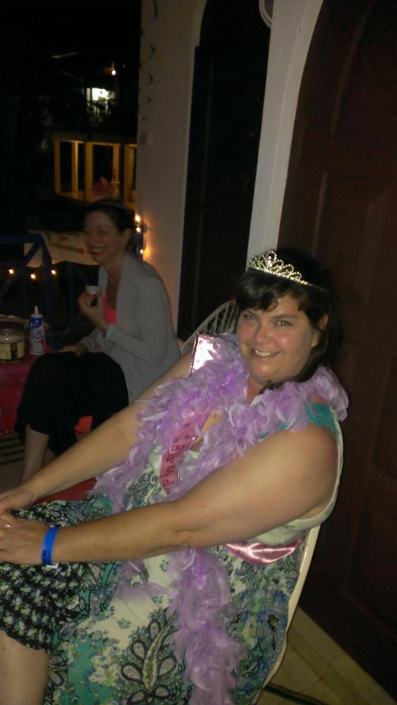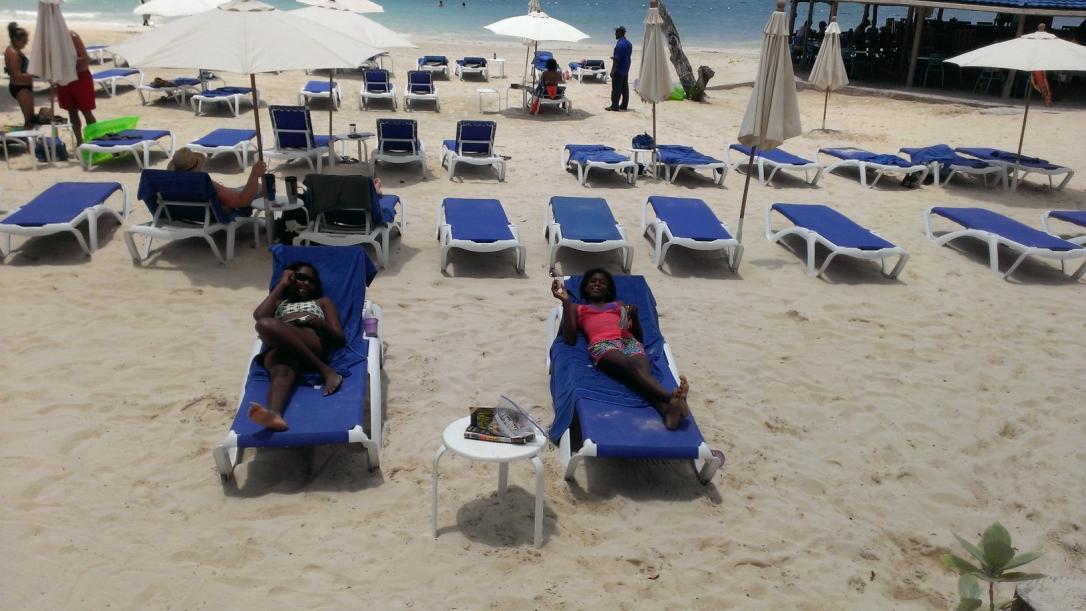 I then head back to the hotel to unpack, unwind, and decorate while waiting for 2 of the roommates (JK and JY) that are arriving later in the afternoon. So this is the deal with our decorations (we get asked a lot about them). We are old and cannot remember any of our trips from any of our other trips (we stay in the same room every time also) so every reach we pick a “theme” such as butterflies or luau and decorate the walls of our porch with the theme. This time it was “Vacation Princesses” and we had all sort of Disney Princess stuff hanging everywhere. Oh, and don’t forget the x-mas lights. Yes, we are truly running out of theme ideas. The fourth roommate was arriving the next day and since the day after that was her birthday we crowned her the “birthday princess” for the trip. Again, we are in our 40’s, 50’s, and 60’s. Not exactly the most mature group of people for this age range, I must admit… I am out enjoying the beautiful sunshine, saying hello to all of my much missed friends at the hotel – Moses, Budda, Dawn when I hear the voices of my friends just arriving! Yay! Let’s get the party started. They took a look around and were very surprised to see the “Adults Only” hot tub! My friend JK loves to hot tub so she was thrilled with the addition. We were all starving by this time so I decided to treat everyone to a delicious chicken from Chicken Lavish. A quick call to Doc, he heard my voice and started to repeat my usual order – everyone cracked up! I told him I had a few more people to feed and the order was in! We were all enjoying the start of the sunset when Doc shows up with more food than I’ve ever seen him deliver. It was also the quickest delivery I have ever had in JA. It was piping hot and wonderful! Doc hung around and we got caught up on all the things that had gone on since I’d seen him. As other people have mentioned, Doc ALWAYS has an opinion on everything and is not shy about sharing them! We love it! Eventually, maybe 2 hours later – we had finished eating and he got a call that he needed to head back to the restaurant. Best fried chicken I’ve ever had in my life. Sorry mom and grandma. JK was feeling worse and worse as the evening wore on so even though she is usually the night owl, she went in early too. We were all tired that evening but I still managed to stay up until midnight (that’s late for me!). Please don't do the math because it's only 10 pm in San Diego so I shouldn't be too impressed with myself! It's hell getting old...