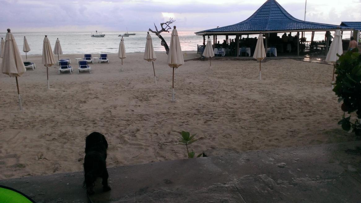 I believe this is the day that I met Michelle and Courtney from Virginia Beach and also Tony from Detroit with his friend and Aunt. Both groups are frequent visitors. I swear all the coolest people hang out in Negril, and specifically Treehouse. I spent half the day almost every day just listening to people’s interesting tales of how they ended up there. Better than anything on tv or radio for sure! I think we must have had lunch at the hotel or not at all because I have absolutely no memory of it whatsoever. Kia, again, was star of the porch. I swear I have more pictures of her than sunsets or food this trip.